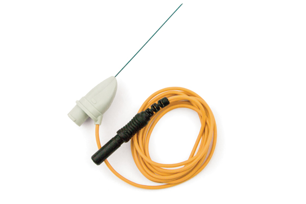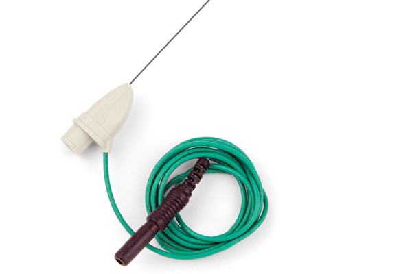 The Myoject Luer Lock Needle Electrode is used in EMG applications to record EMG activity while allowing injection of medication.