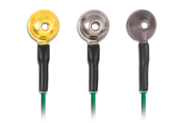 Grass Reusable Stamped-Cup EEG Electrodes are available in gold, silver or Ag/AgCl, 10 mm and 6 mm cups.